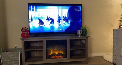 Ameriwood Home 65 19 In W Gray Tv Stand With Fan Forced Electric Fireplace In The Electric Fireplaces Department At Lowes Com